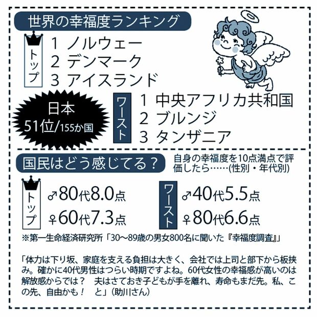 トレンド 2017/5/21 『自分のこれまでの人生』につけた平均点は60点──日本人ははたして幸せなのか 『週刊女性』編集部 印刷 [写真 1/2枚目] イラスト/スヤマミズホ [写真 2/2枚目] この写真の記事へ戻る