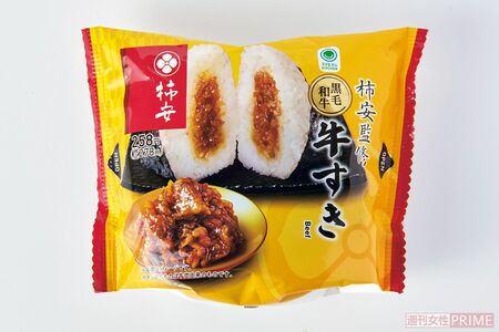 「甘みのあるすき焼きダネと、すき焼きの汁が染みたご飯の一体感があってごちそう感が楽しめます。肉を知り尽くす『柿安』が監修しているだけある深い味。インバウンドにも刺さりそう」/278円