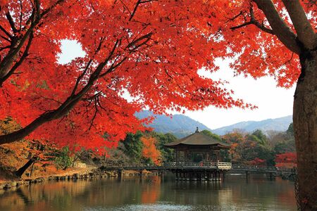 都の北西に位置し、天神様(菅原道真公)をお祀(まつ)りする北野天満宮は、初春の梅とともに秋の紅葉も見事。