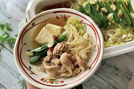 (5)豚肉に火が通ったらニラ、ニンニク、赤唐辛子、炒りごまをのせ、ごま油をかける。煮立ったら出来上がり。