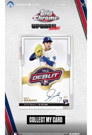 「佐々木選手が告知したカードは、かなり特別なものなのです。MLBでは、ルーキー選手はメジャーデビューを果たした試合で『MLB DEBUT』と記された特別なワッペンをユニフォームの袖につけて試合に臨みます。