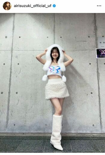 「鈴木さんは、FANTASTICSのツアーグッズのTシャツを切ってチューブトップの形にして、もともとはバックプリントになっているツアーロゴを前面にするというアレンジをしていました。それに、もこもこのミニスカートを合わせた露出多めな衣装での出演でした。 インスタグラムに衣装姿の写真をアップした鈴木さん自身も《布少なめ》だと説明していましたね(笑)」(スポーツ紙記者、以下同)