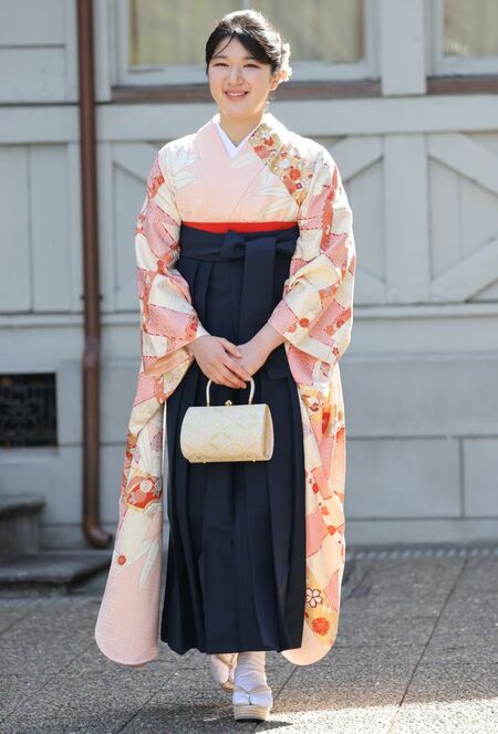 卒業式に洋装を選ばれることが多い皇族方だが、愛子さまが袴姿で臨まれたのはご本人の強いご希望があったからだという。桜色の本振り袖に凛とした紺色の袴を合わせ、晴れやかな笑顔で学び舎を後にされた。