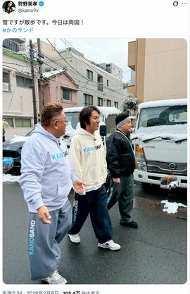 「狩野さんのXではその後、両国で『かのサンド』の収録をしていると報告していたため、番組のロケで行ったのは間違いないですね。ただ大相撲中継といえば『NHK』なので勘違いしている人が多くいるのですが、今回はフジテレビが主催の『大相撲トーナメント』。だから“しれっと”映り込みつつ、堂々と“宣伝”ができたんだと思います」(テレビ誌編集者)