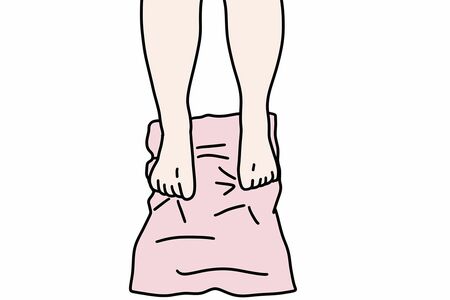 イスに腰かけ、足元の床にフェイスタオルを縦向きに1枚敷く。タオルの下端に足の指先を置き、足の親指だけを使ってタオルをたぐり寄せる。たぐり寄せ切ったら、タオルを元の位置に戻す。左右それぞれの指で10回。同様に小指でも行う。1日に1~3回。