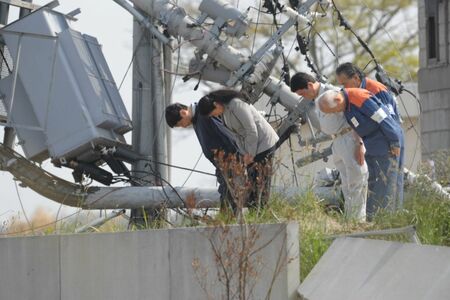 皇太子ご夫妻が、東北の被災地初訪問となる宮城県へ。折れ曲がった電柱が、地震の壮絶さを物語っている。
