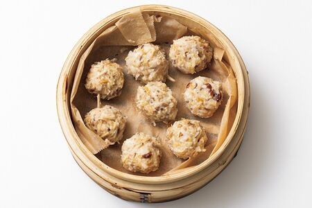 (3)せいろにクッキングシートを敷き、(2)を食べやすい大きさのだんご状に丸めながら並べる。ふたをして中強火で10分蒸す。完全に冷めてから保存容器に入れる。