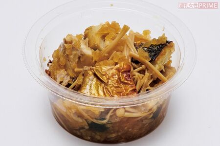 ひじき、豆腐、枝豆、れんこん、油揚げ、にんじん、ごぼうを使用。「食物繊維やミネラルが手軽にとれていいですよね。具材をイチからそろえて煮る手間を考えると高コスパ」(曽根)、「ご飯に混ぜておにぎりにしたい」(M)