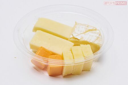 ゴーダ、チェダー、パルメザン、カマンベール、4種チーズの盛り合わせ。「プチプラなのにデパ地下のような種類の多さで楽しい」(曽根)、「やや風味が弱いが、コスパを考えれば十分満足」(M)