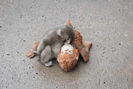 千葉県・市川市動植物園のアイドル、ニホンザルのパンチくん(生後約8か月)。IKEAのオランウータンのぬいぐるみ、通称「オランママ」を健気に抱きしめる姿が世界中で話題になったが、最近は“ママ離れ”が進んでいるという。