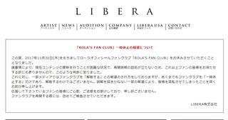 11月30日いっぱいで、ファンクラブの一時休止を告知した(オフィシャルHPより)