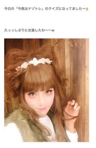 2015年10月31日には《Halloweenは辻ちゃんメイク》として、妻の辻によるメイクでの女装姿も披露した杉浦太陽(本人のブログより)