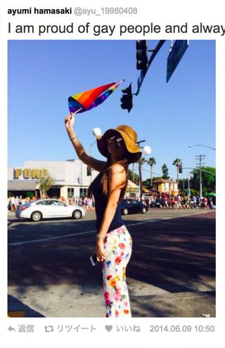 '14年には海外のゲイパレードに参加し、レインボーフラッグを振った(公式Twitterより)