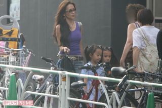 2007年、Cocomiの小学校入学式。次女のKoki,を連れたラフな格好の工藤静香が印象的
