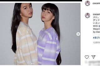 父・木村拓哉からプレゼントされたロンTを着たKokiとCocomi(CocomiのInstagramより)