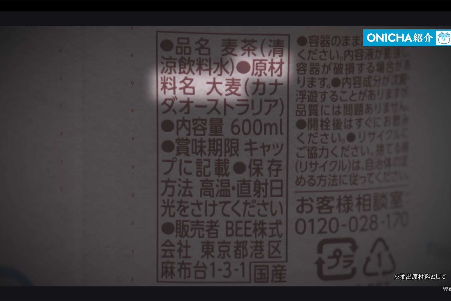 HIKAKINのオリジナル麦茶『ONICHA(オニチャ)』の原材料となっている大麦はカナダとオーストラリア産(本人のYouTubeチャンネルより)